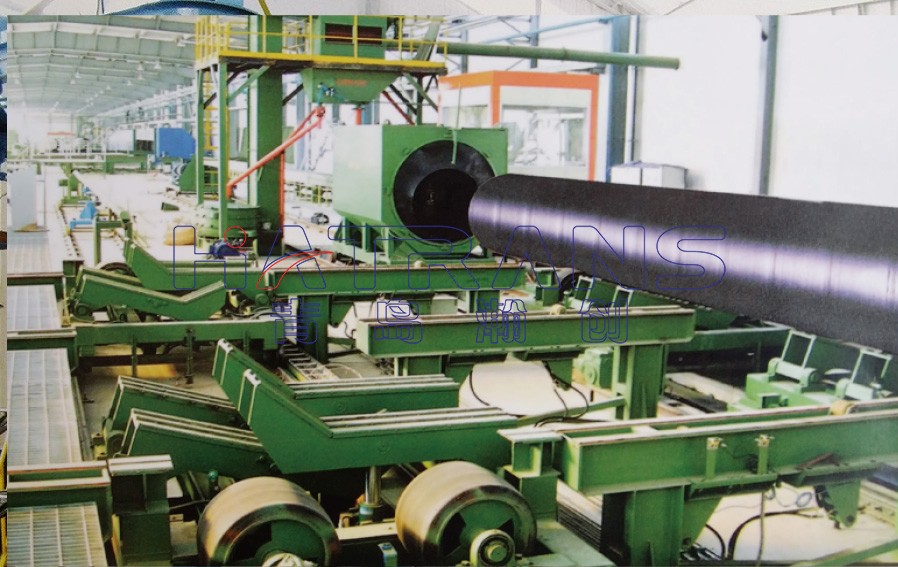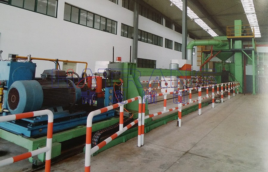 該設備通過將高速運動的彈丸流拋(噴)射到鋼管內表面,清理掉鋼管內表面的氧化物及附屬物,并通過使其表面產生微塑性變形而有效地提高管道的強度和表面抗腐蝕性及漆膜附著力,消除焊接應力等,從而大大提高管道整體質量和使用壽命。