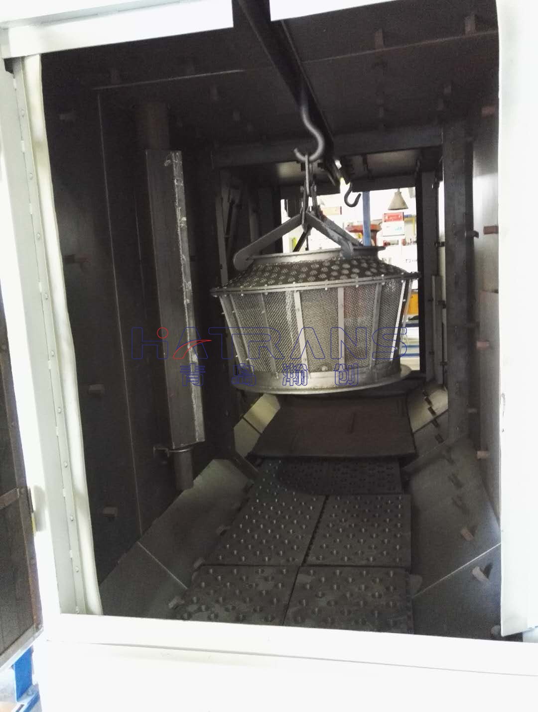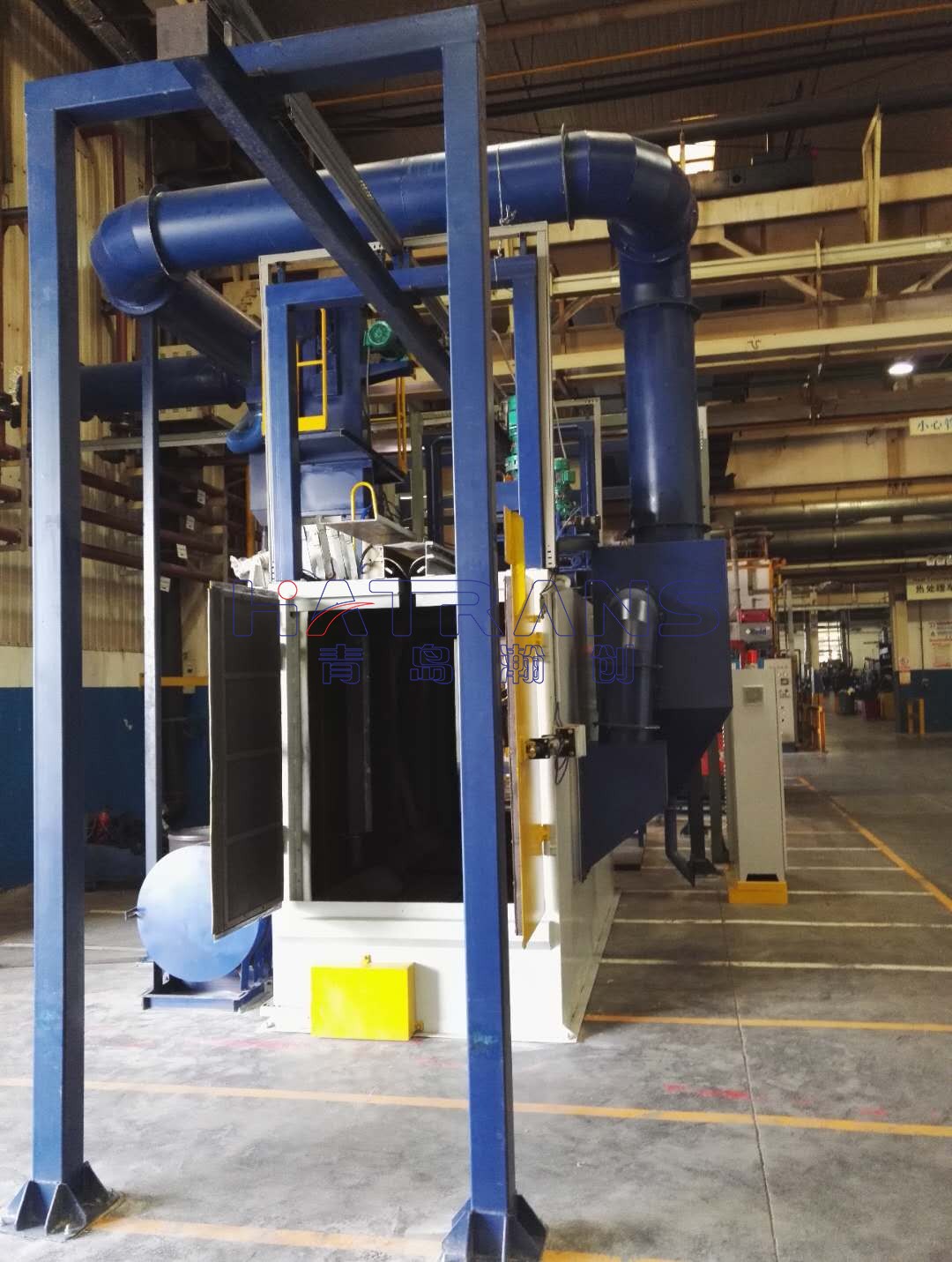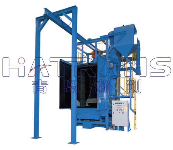 采用無地坑形式,特殊的吊鉤設(shè)計和行走旋轉(zhuǎn)驅(qū)動機構(gòu),尤其適用于復(fù)雜形狀鑄件的落砂和焊接結(jié)構(gòu)件的去除氧化皮,其效果超群